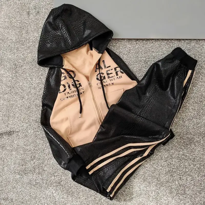 خرید عمده ست سوییشرت و شلوار چرم مار طرح دار مردانه