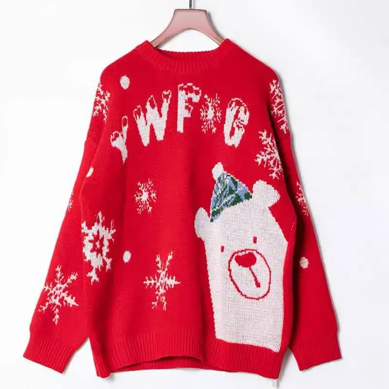خرید عمده پلیور بافت کریسمسی طرح خرس و دانه برف زنانه و مردانه