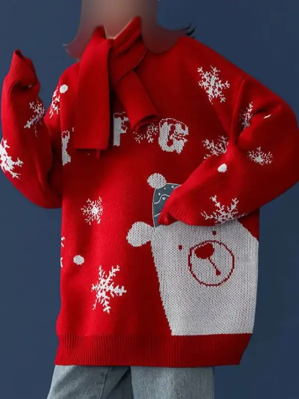 پلیور بافت کریسمسی طرح خرس و دانه برف