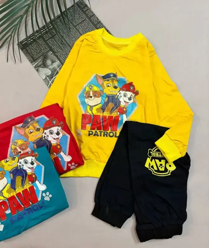 این ست لباس پسرانه با طرح محبوب سگ نگهبان، گزینهای عالی برای خرید عمده پوشاک بچه گانه است. جنس پنبهای آن راحتی و لطافت را برای کودکان تضمین میکند.