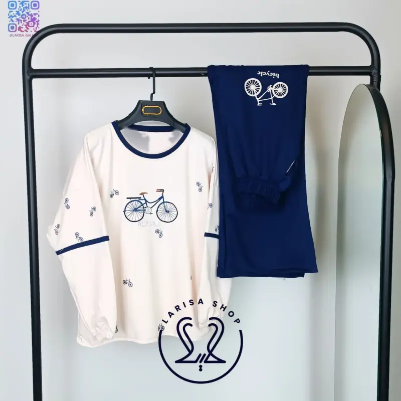 ست بلوز شلوار لانگ زنانه طرح دوچرخه پاییزه لاریسا