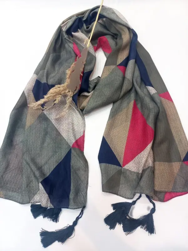 خرید عمده شال نخی طرح گلیمی منگوله دار زنانه