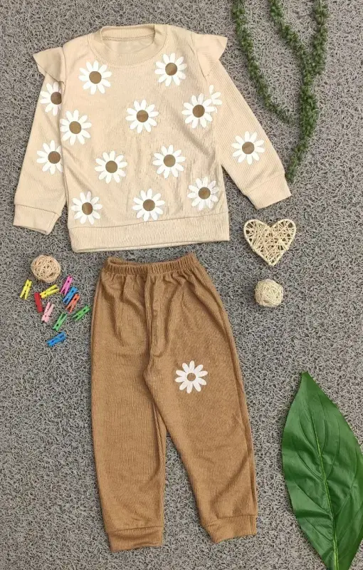 خرید عمده بلوز شلوار دخترانه کبریتی طرح بابونه | ست لباس راحتی کودک