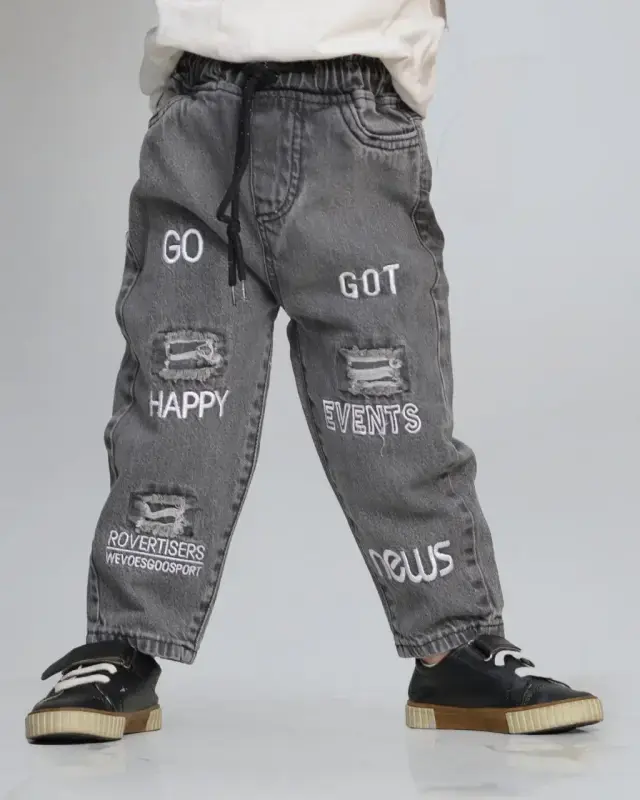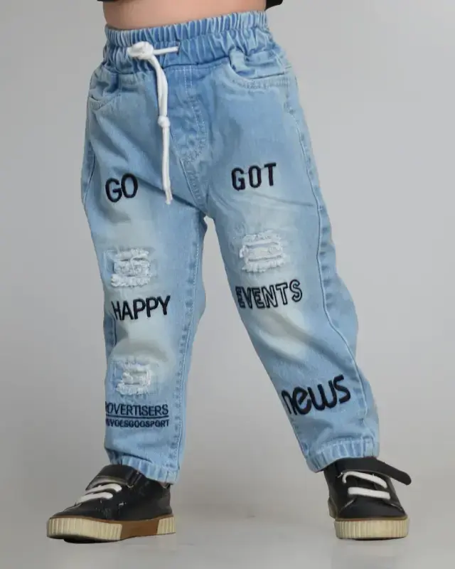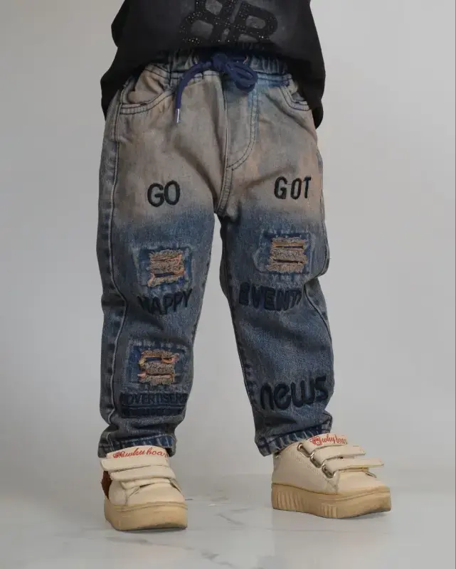 خرید عمده شلوار جین مام فیت طرح دار بچگانه