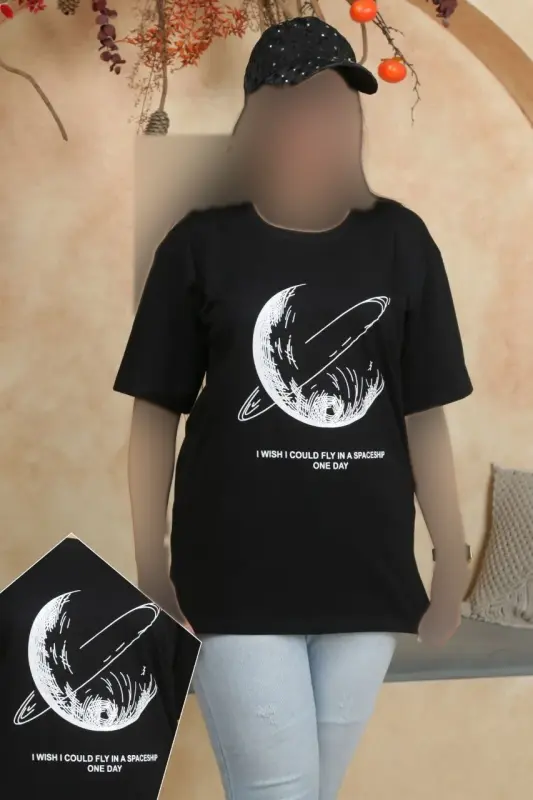 خرید عمده تیشرت لانگ زنانه طرح فضاپیما کد 102