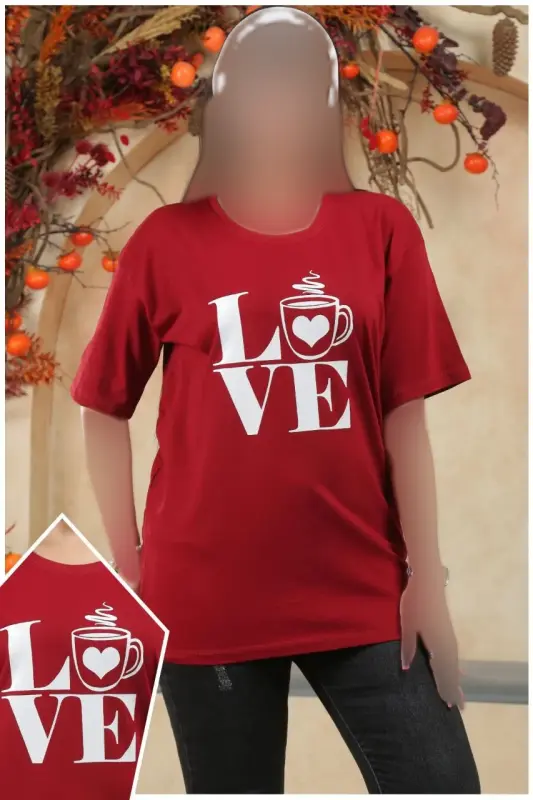 خرید عمده تیشرت زنانه طرح لاو و فنجان قهوه، سایزبندی 36 تا 50، جنس پنبه سوپر اعلا