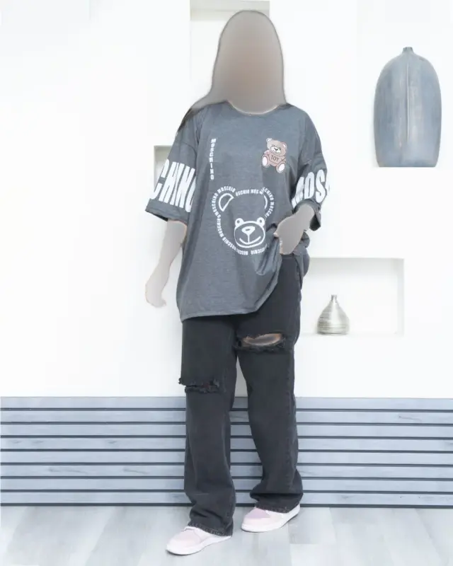 خرید عمده تیشرت لانگ بیگ سایز طرح خرس ملانژ اعلا