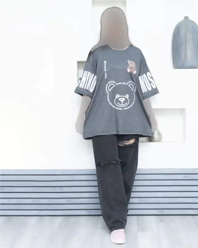 تیشرت لانگ بیگ سایز طرح خرس ملانژ اعلا