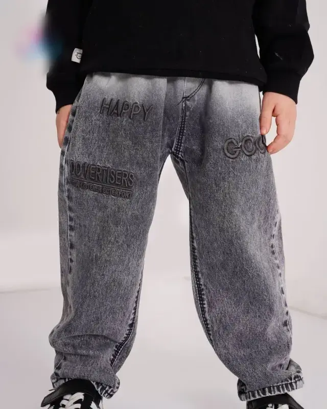 خرید عمده شلوار جین مام فیت پسرانه طرح دار کد 110