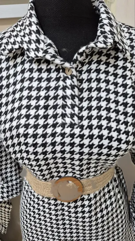 کفتان چهارخانه زنانه با کمربند کنفی