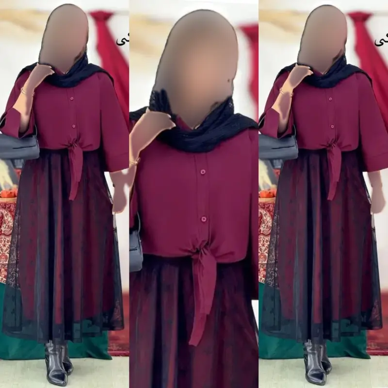 - جنس: شومیز از پارچه تترون با کیفیت و دامن از دانتل طرح پاپیونی، ترکیبی زیبا و چشمنواز را ایجاد کرده است.