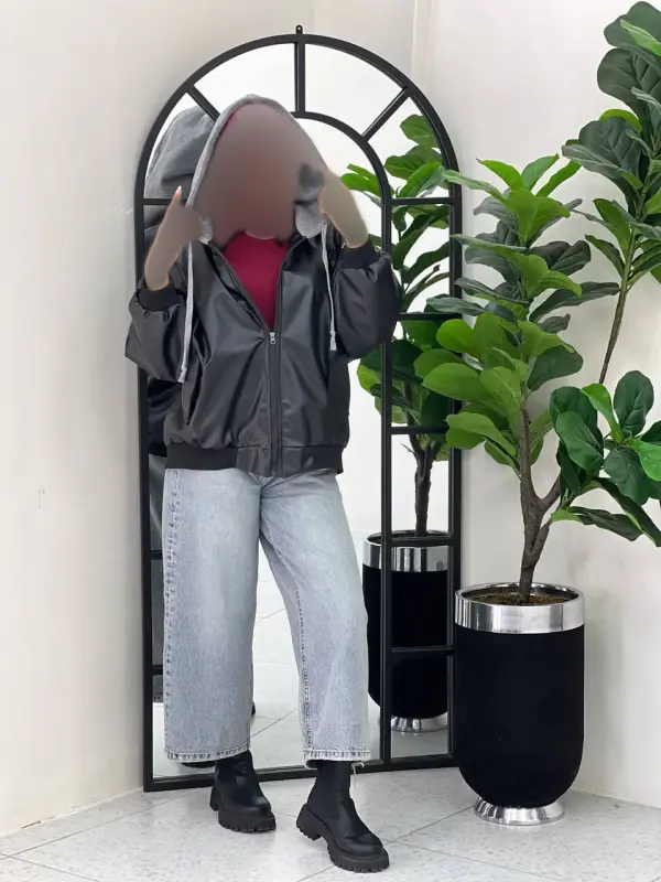 خرید عمده سویشرت کلاهدار استر دار چرم درجه یک زنانه