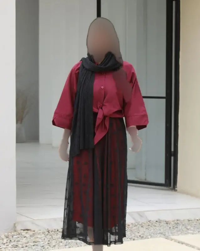 - نوع پارچه: شومیز از پارچه تترون و دامن از دانتل با کیفیت بالا تهیه شده است.