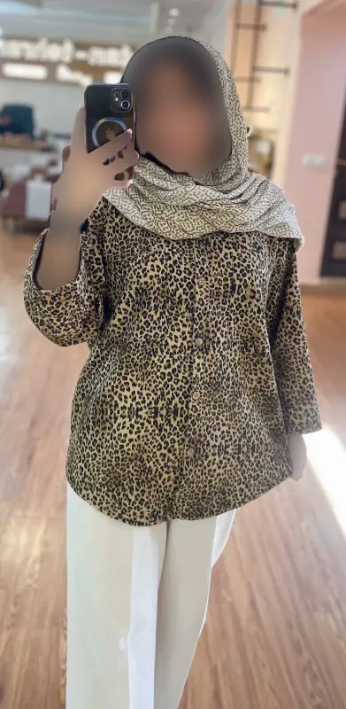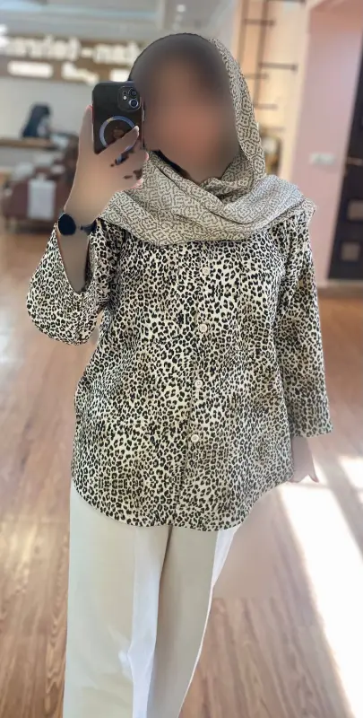 شومیز پلنگی زنانه آستین پاکتی فری سایز