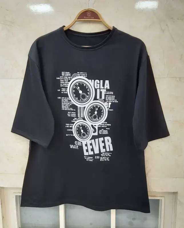خرید عمده تیشرت لانگ زنانه طرح ساعت و نوشته