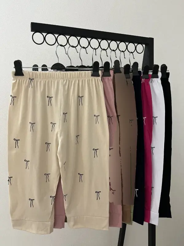 خرید عمده ست کراپ و شلوارک نخی زنانه طرح پاپیون