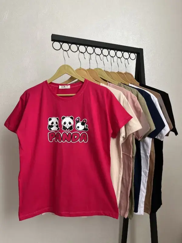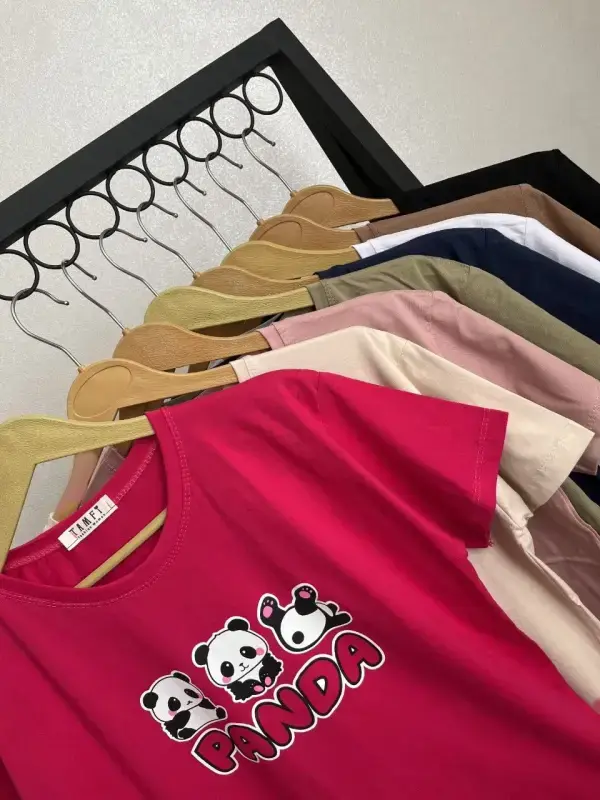 خرید عمده تیشرت قواره دار طرح پاندا جنس پنبه سوپر فری سایز زنانه