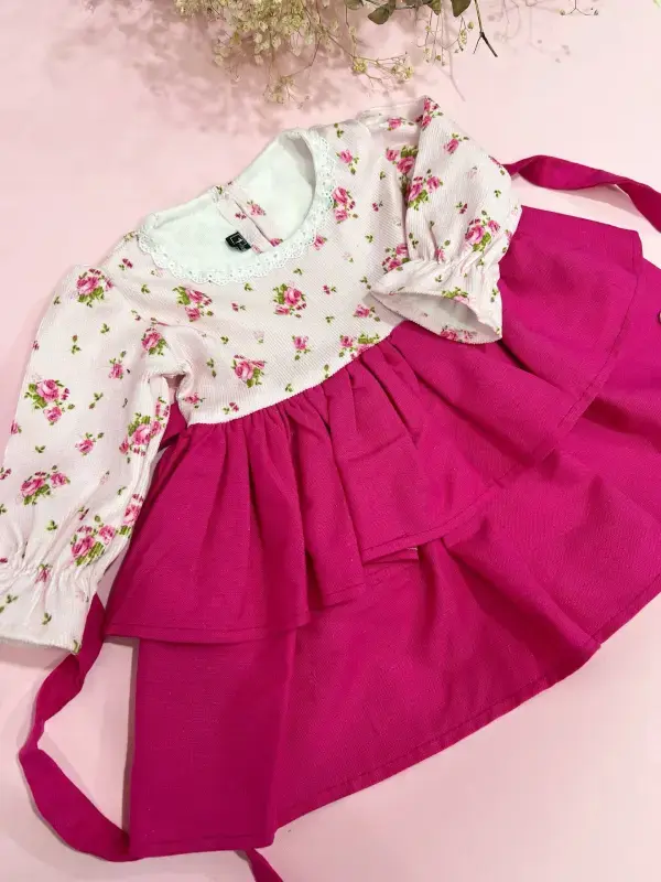 پیراهن دخترانه طرح گل صورتی سایز 30/35