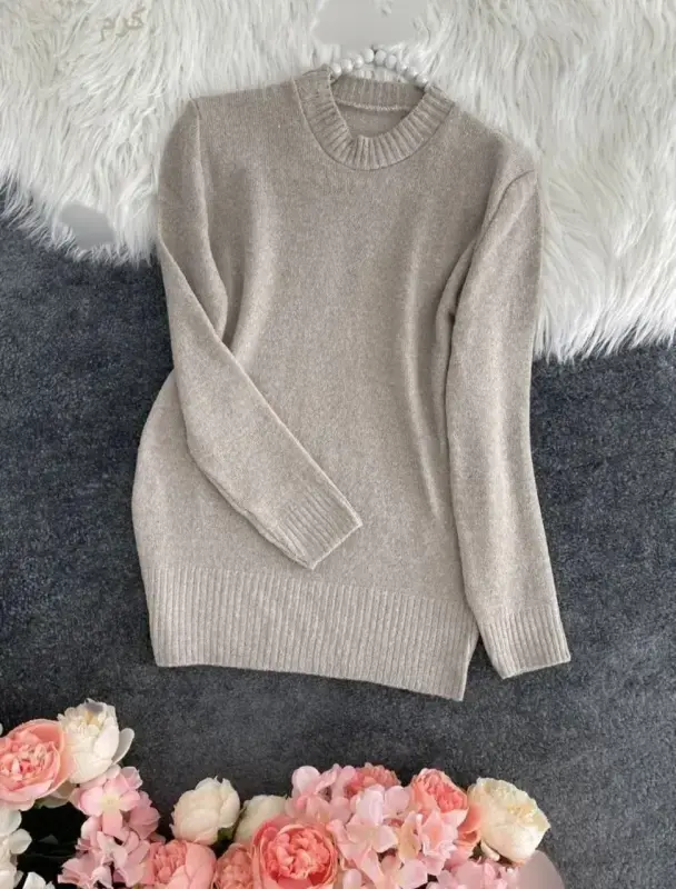 خرید عمده پلیور بافت یقه گرد زنانه مدل گپ باتو فری سایز
