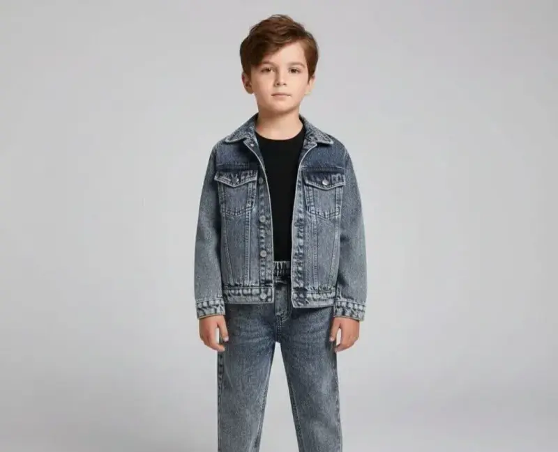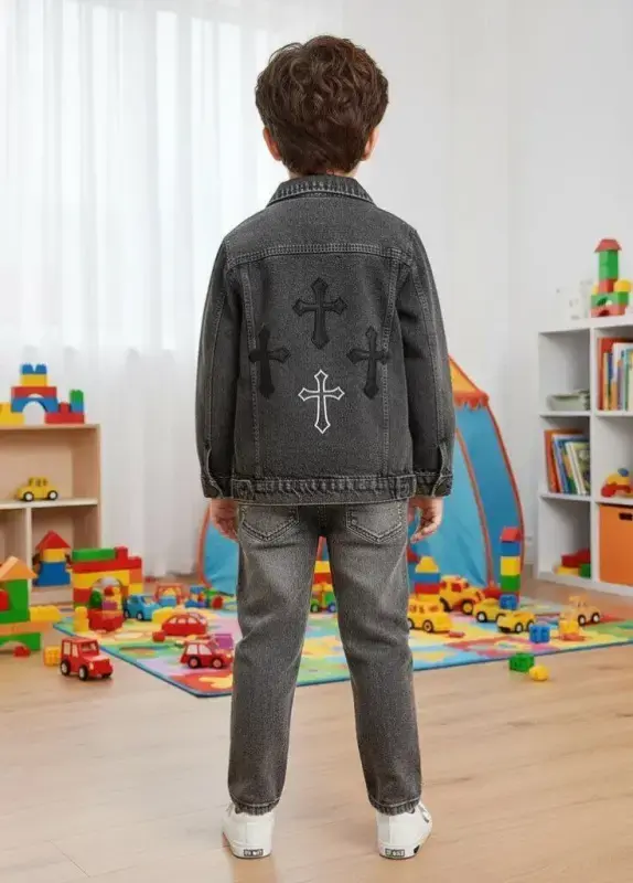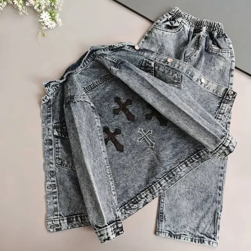 خرید عمده ست کت و شلوار لی اسپرت بچگانه طرح صلیب عیدانه