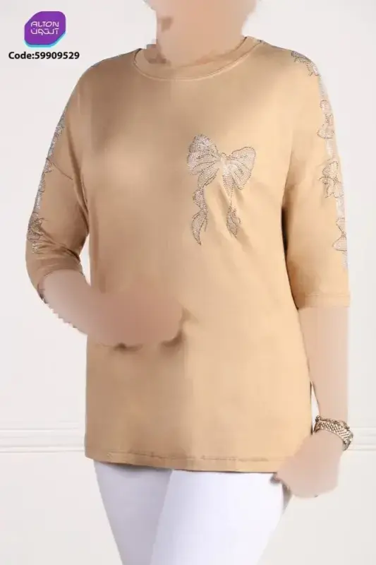 خرید عمده تیشرت زنانه قواره بزرگ آستین سه ربع پاپیون نگیندار
