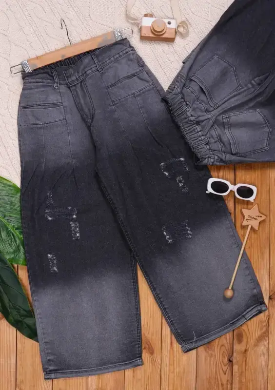 خرید عمده شلوار لی فول بگ کمر کش زنانه کد 11738