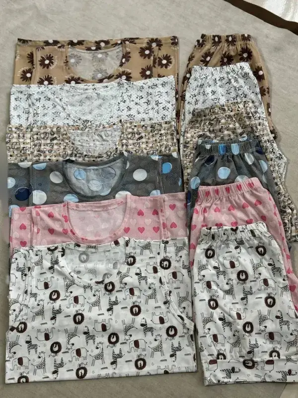 این ست شامل 6 عدد تاپ و شورتک زنانه با طرحهای متنوع است که انتخابی عالی برای خرید عمده پوشاک زنانه محسوب میشود.