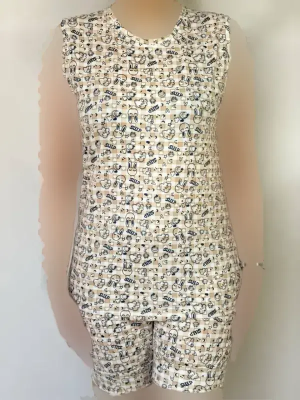 ست تاپ و شورتک نخی زنانه طرحدار پک 6 عددی