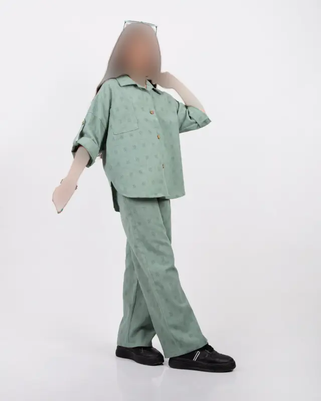 خرید عمده ست دو تیکه دخترانه شومیز و شلوار کنفی طرحدار