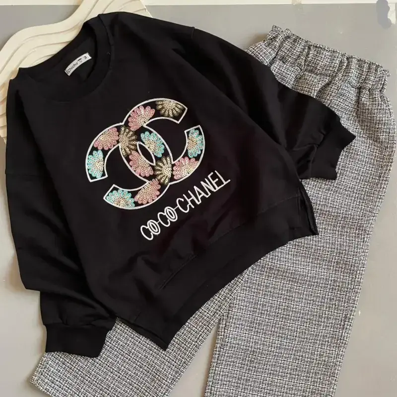 خرید عمده ست دو تیکه بلوز و شلوار بچگانه طرح کوکو شنل پاییزه