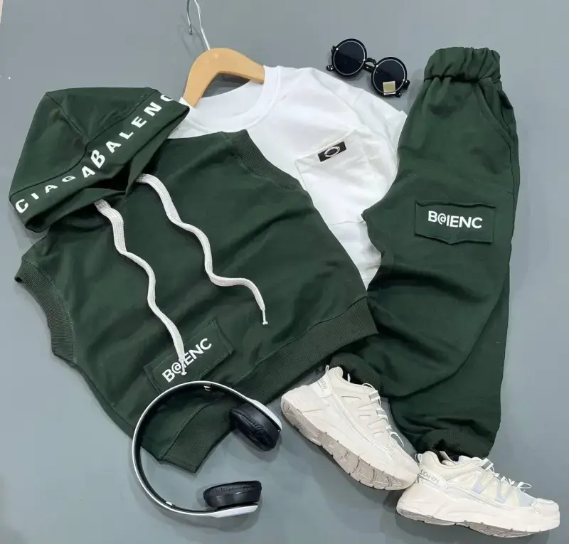 خرید عمده ست سه تیکه اسپرت لش بچگانه شامل بلوز، وست و شلوار
