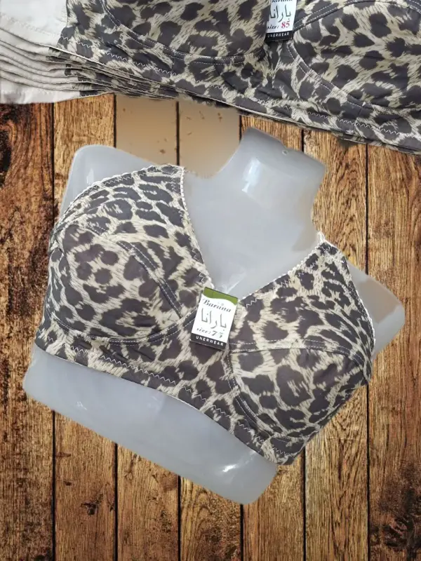 خرید عمده سوتین زنانه طرح پلنگی زیر نخ کش باریک فانتزی سایز 75 تا 85