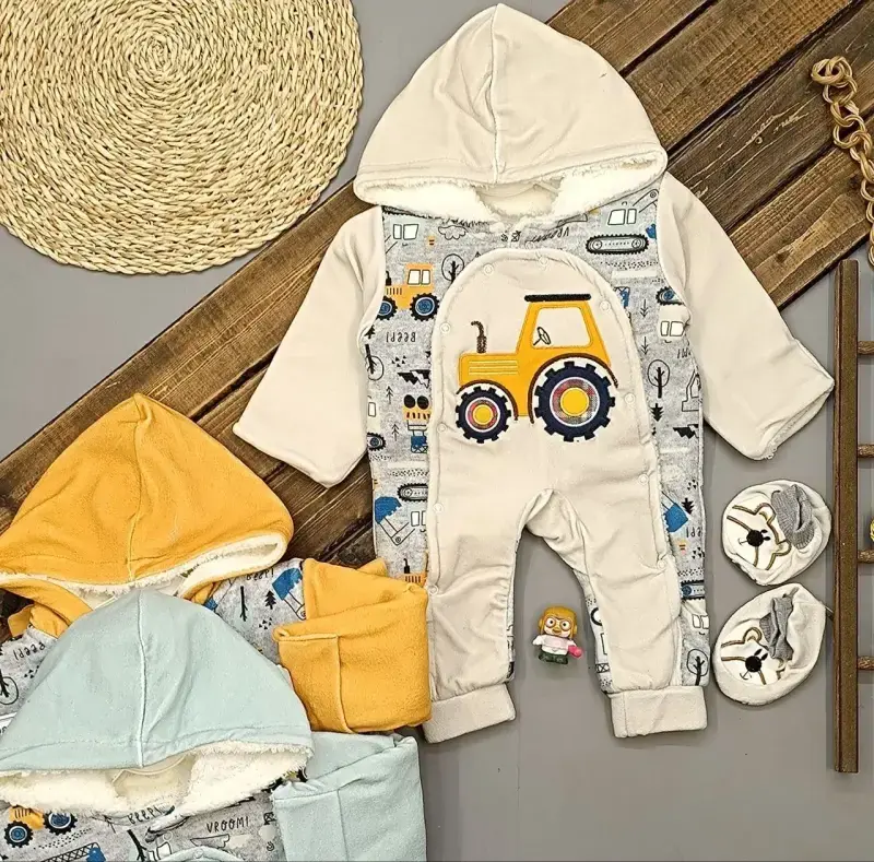 خرید عمده سرهمی پسرانه طرح ماشین با کلاه و جوراب