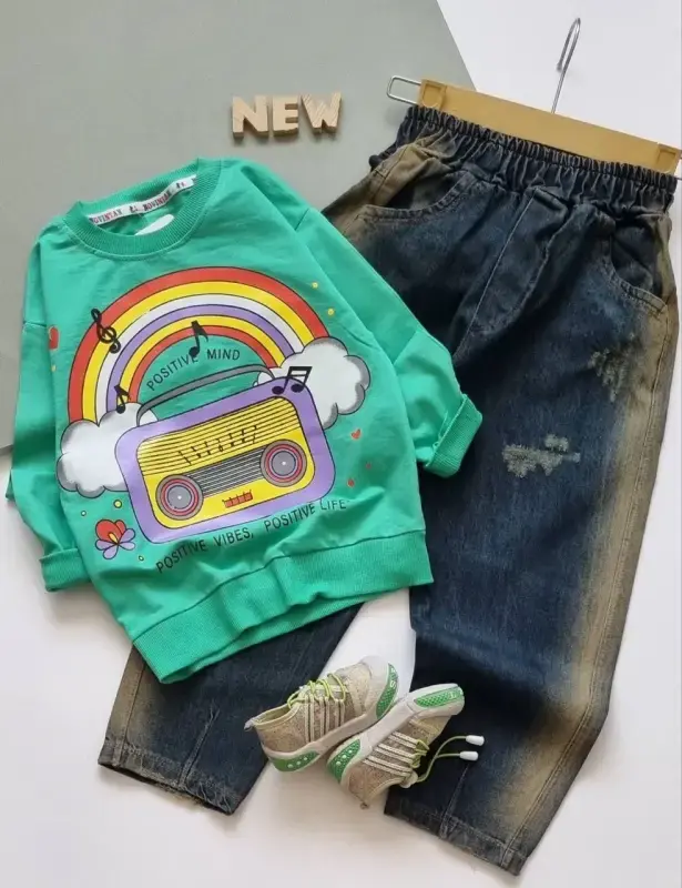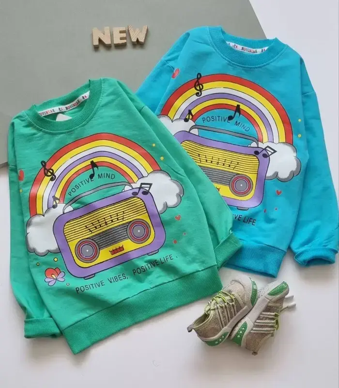 خرید عمده ست بلوز و شلوار پاییزه دخترانه طرح رادیو و رنگین کمان