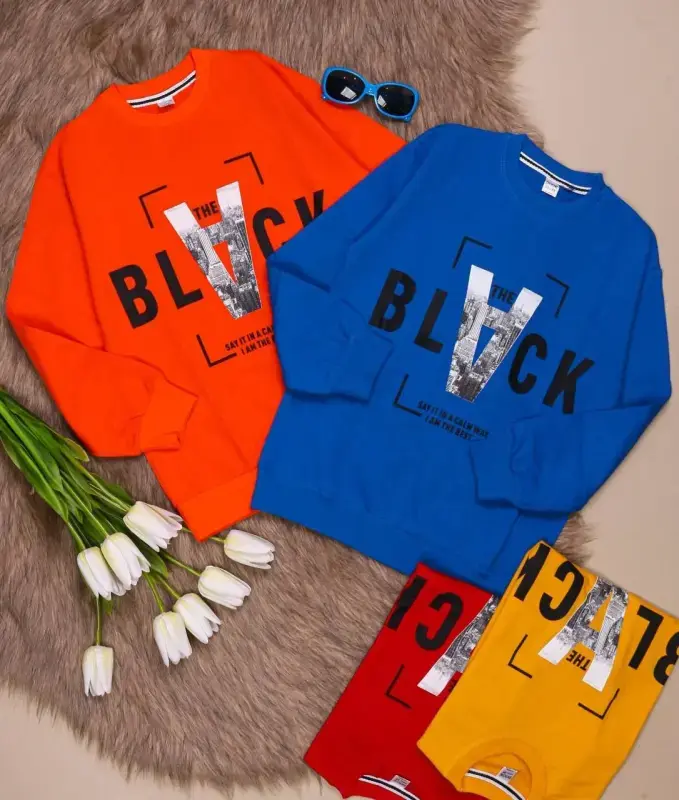 خرید عمده بلوز تک پنبه دورس پسرانه طرح "THE BLOCK"