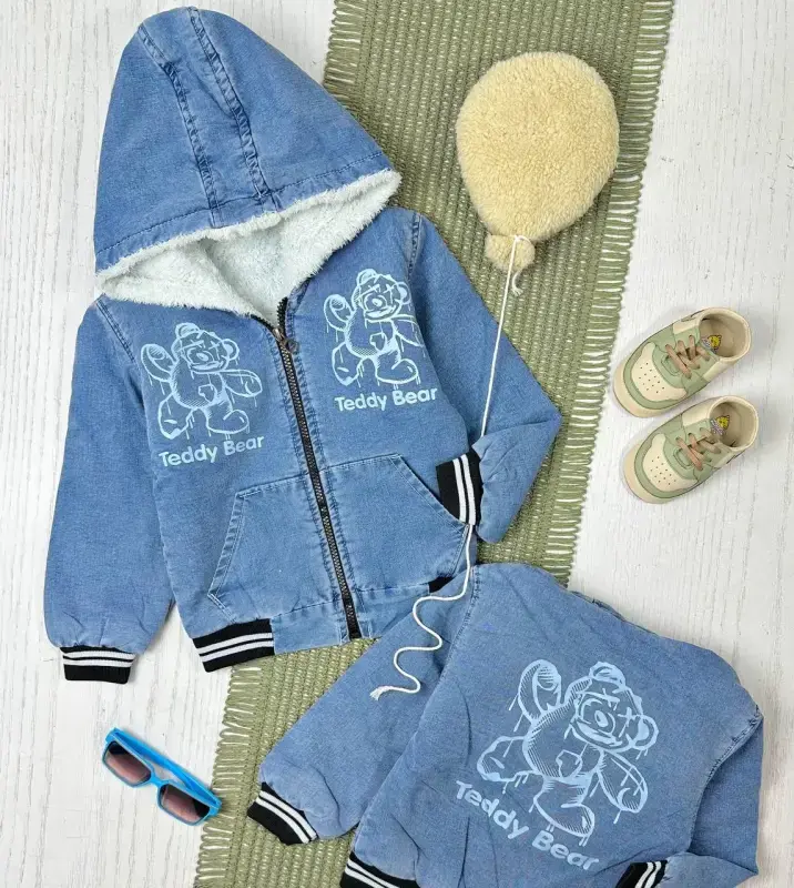 خرید عمده کاپشن لی پسرانه طرح خرس تدی