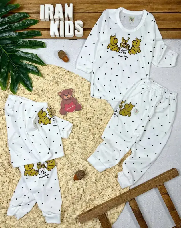 معرفی یک ست جذاب و کاربردی برای نوزادان: بلوز شلوار با طرح دوستداشتنی خرس و خال خالی. این محصول با کیفیت، انتخابی ایدهآل برای تکمیل ویترین فروشگاه شماست.