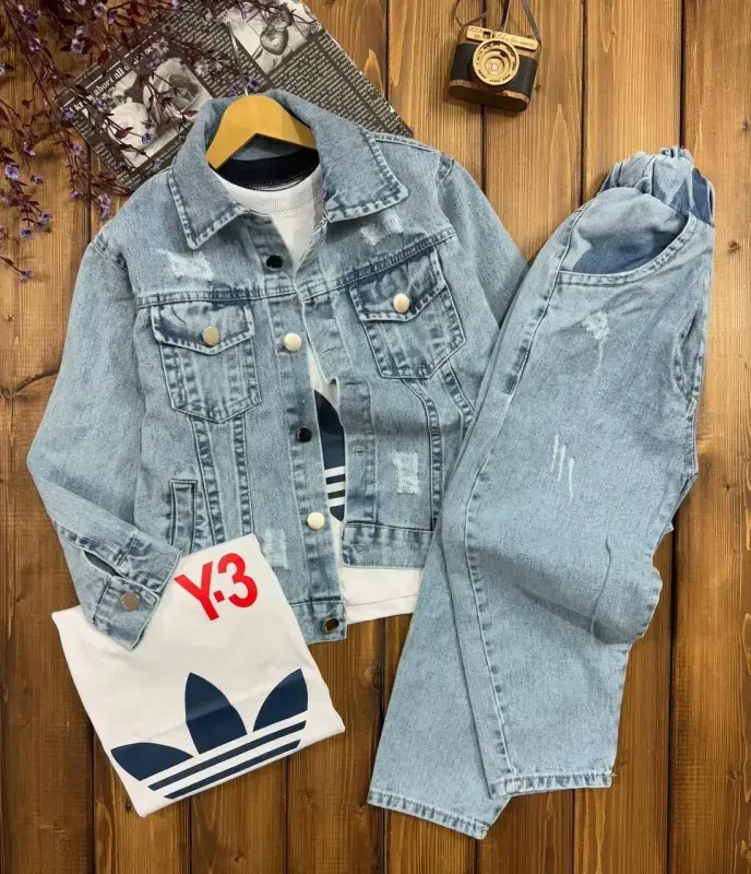 ارائه دهنده خرید عمده پوشاک با کیفیت، ست کت و شلوار لی گرم بالا بچگانه همراه با شلوار مام فیت را معرفی می‌کند. این ست با طراحی مدرن و جنس مرغوب، انتخابی ایده‌آل برای مغازه‌داران و بوتیک‌داران گرامی است که به دنبال محصولات پرفروش و باکیفیت برای فروشگاه خود هستند.