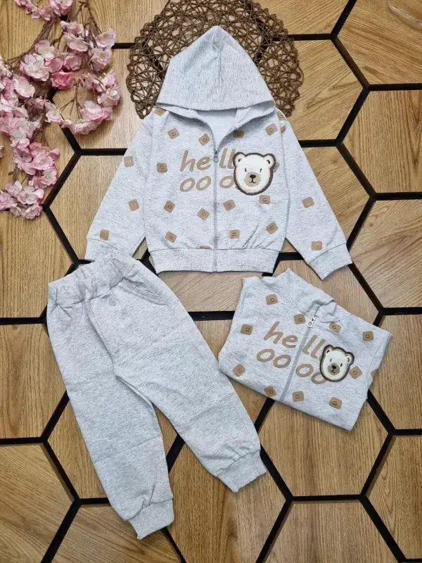 ست سویشرت و شلوار پسرانه طرح خرس ملانژ