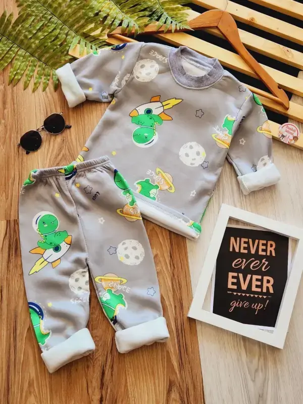 ست بلوز شلوار پسرانه طرح دایناسور فضانورد داخل کرک وارداتی