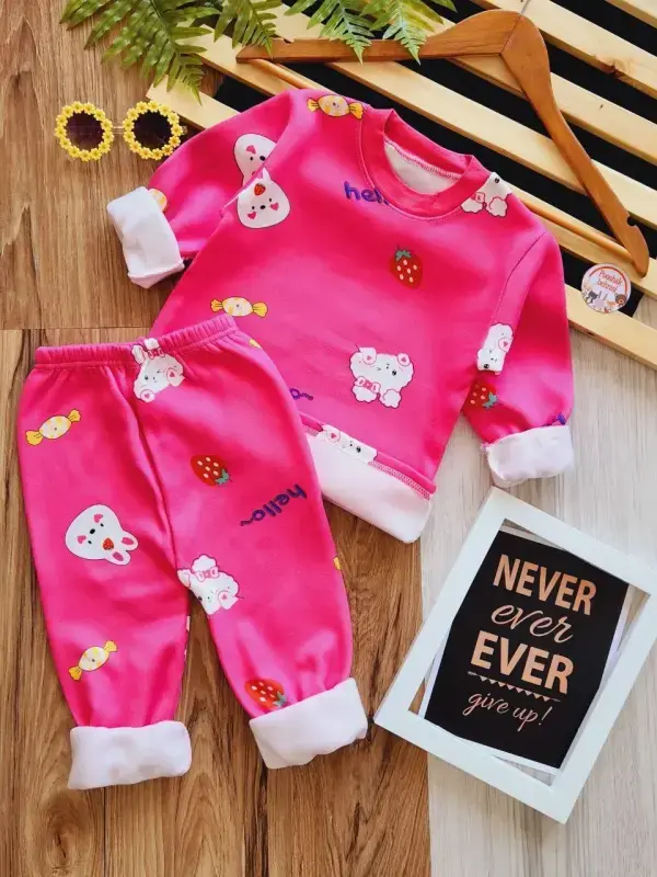 ست بلوز شلوار دخترانه وارداتی داخل کرک طرح توت فرنگی و خرگوش
