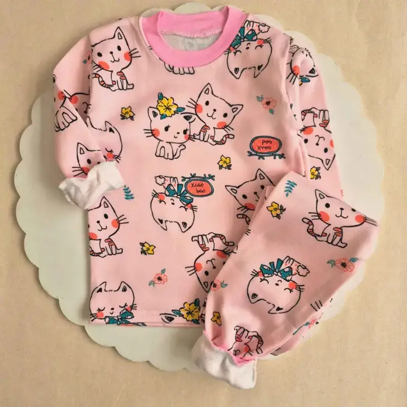 خرید عمده ست بلوز شلوار وارداتی داخل کرک طرح گربه دخترانه مناسب 3 تا 6 سال