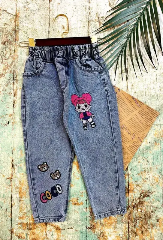 شلوار لی دخترانه عروسکی گلدوزی شده Coco