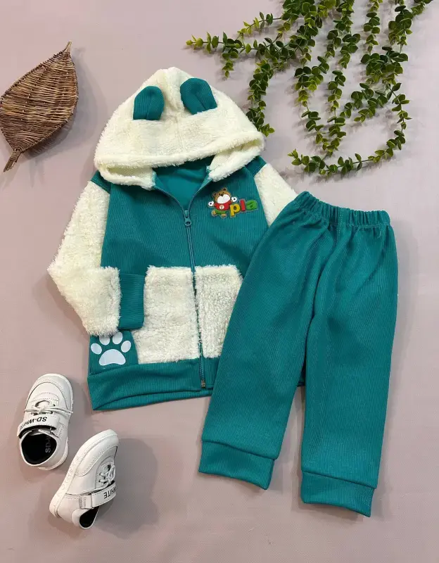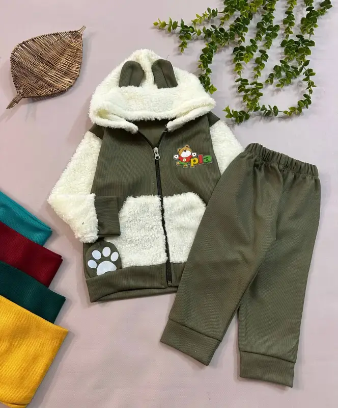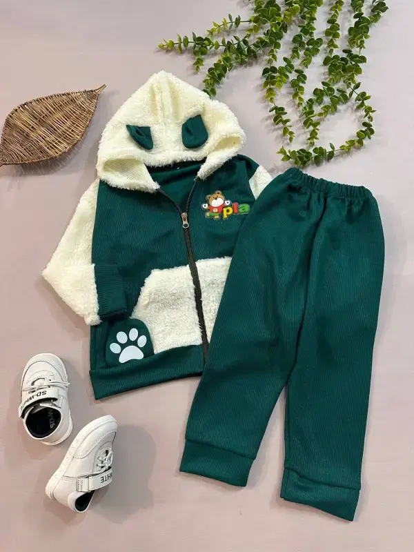 این ست شامل یک سویشرت و یک شلوار با جنس کبریتی و آستر بره ای است که برای کودکان انتخابی گرم و راحت محسوب میشود. طرح زیبای خرس روی این ست، جذابیت آن را برای کودکان دوچندان کرده است.