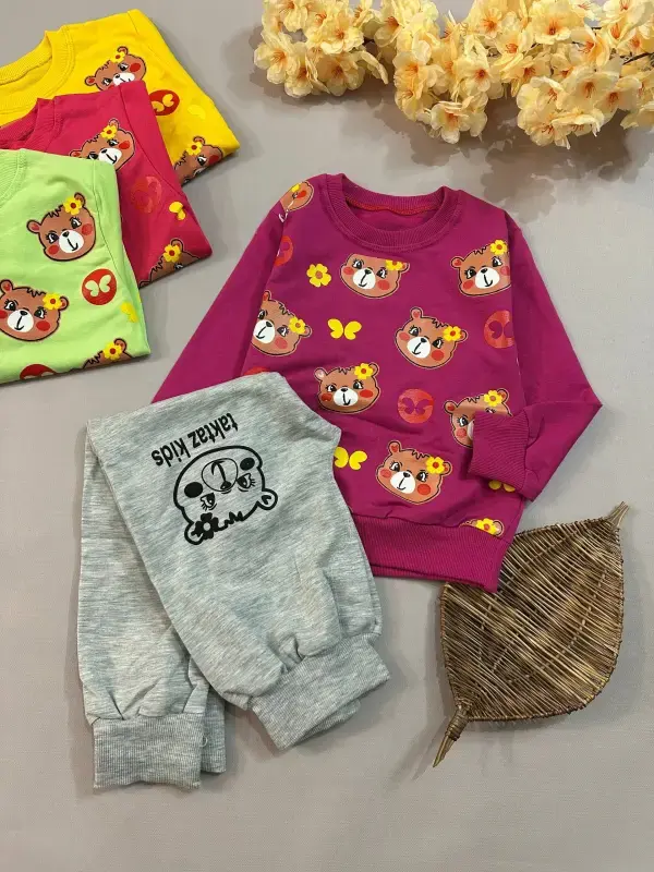 این ست بلوز شلوار دخترانه با طرح جذاب خرس و پروانه، انتخابی ایده‌آل برای مغازه‌داران و بوتیک‌داران است که به دنبال خرید عمده پوشاک با کیفیت و پرطرفدار هستند.