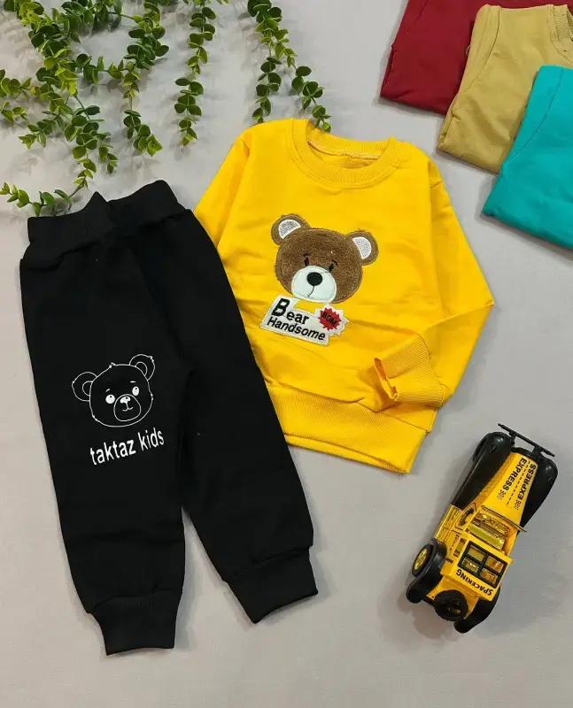 معرفی یک ست جذاب و باکیفیت برای کودکان: بلوز شلوار پنبه دورس با طرح تیکه دوزی خرس. این محصول با تمرکز بر راحتی و زیبایی، انتخابی ایدهآل برای مغازهداران و آنلاینشاپهای پوشاک است.