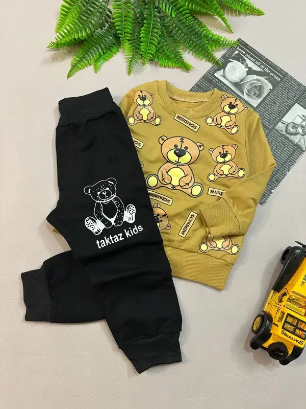یک گزینه عالی برای خرید عمده پوشاک بچگانه، بلوز شلوار پنبه دورس با طرح خرس نشسته است. این محصول با کیفیت، انتخابی مناسب برای بوتیک داران و آنلاین شاپهای پوشاک است.