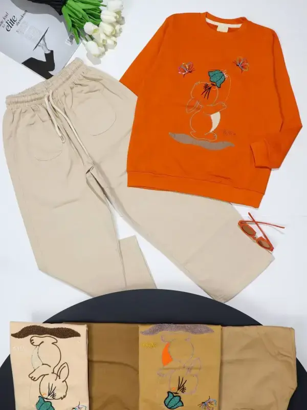 معرفی جدیدترین محصول پرفروش ما: ست بلوز شلوار دخترانه با طرح جذاب خرگوش نارنجی.