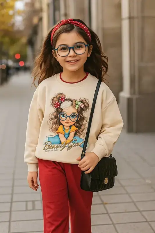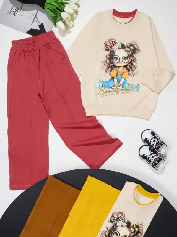 خرید عمده بلوز شلوار دخترانه طرح Beauty Girl با پارچه پنبه درجه 1