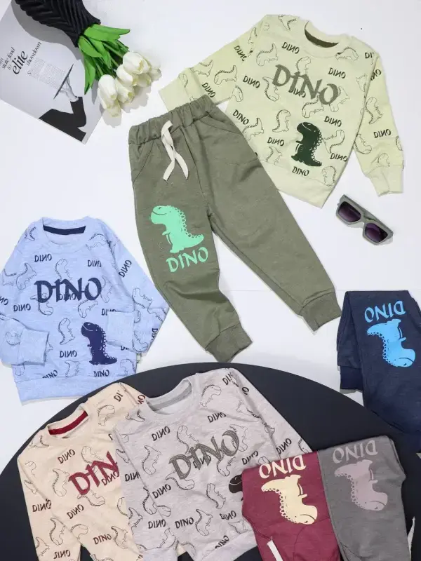 خرید عمده بلوز شلوار پسرانه طرح دایناسور گلدوزی شده